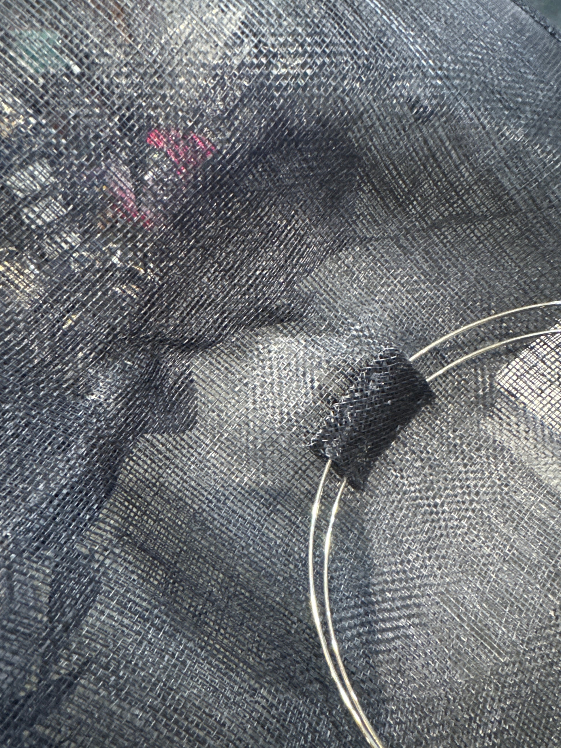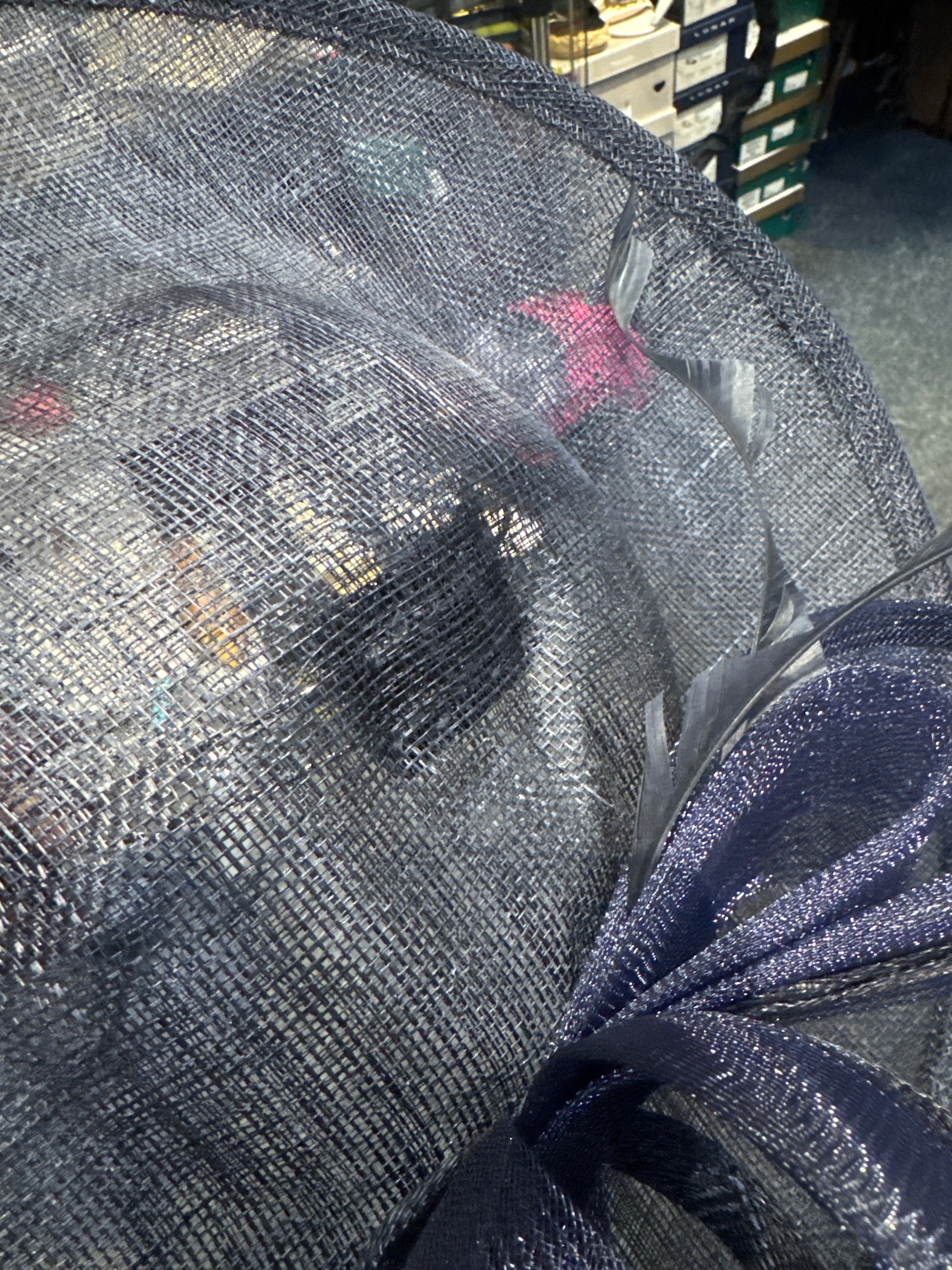 Hat is reduced due to dent in sinamay on crown where headband is attatched.