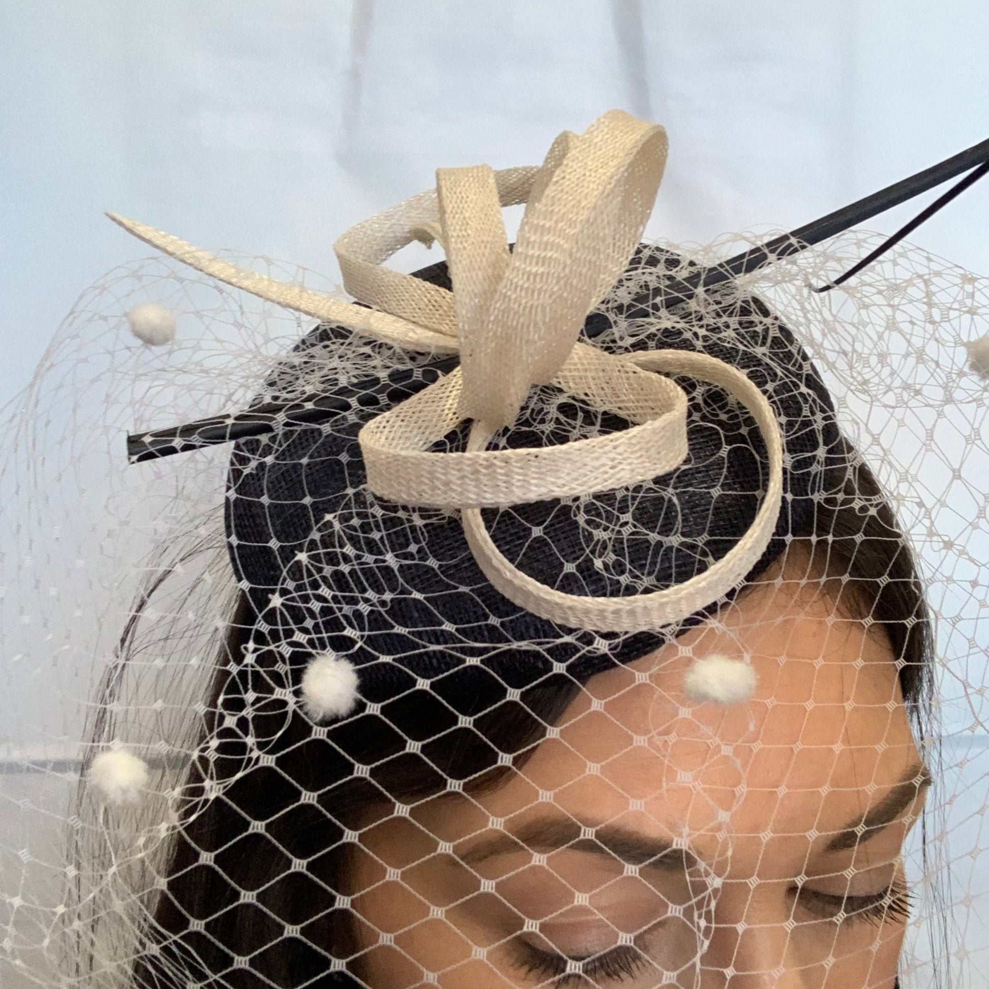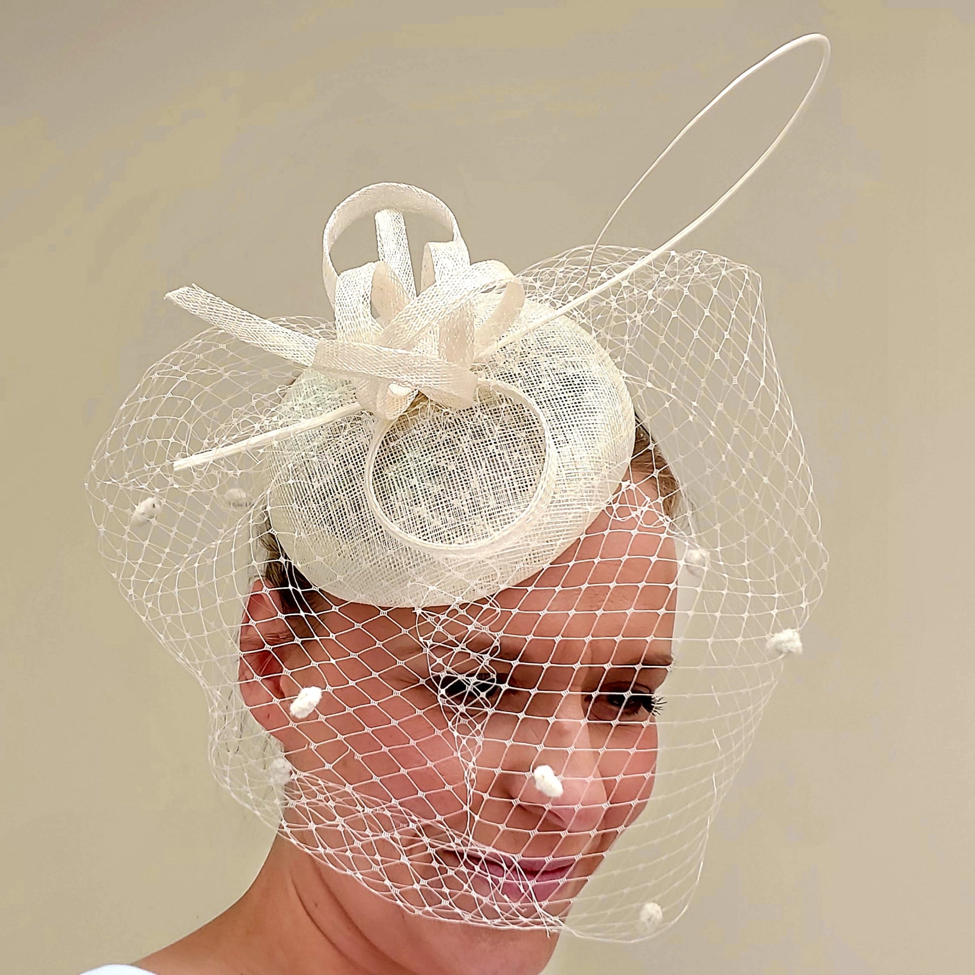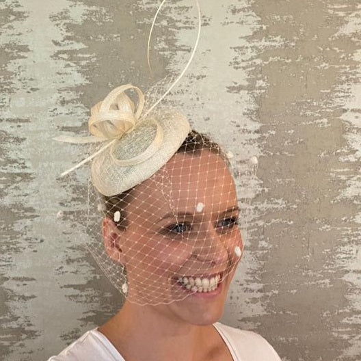 A delicate design with ribbons and net. The net falls across the side of the face.