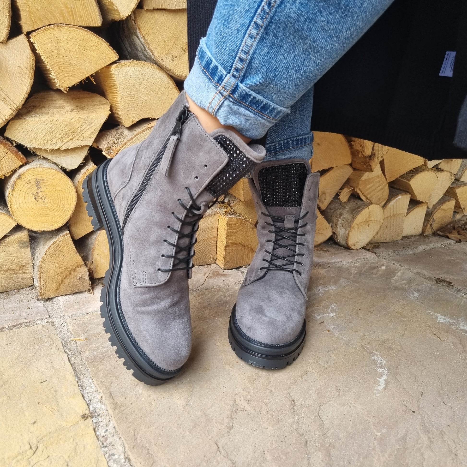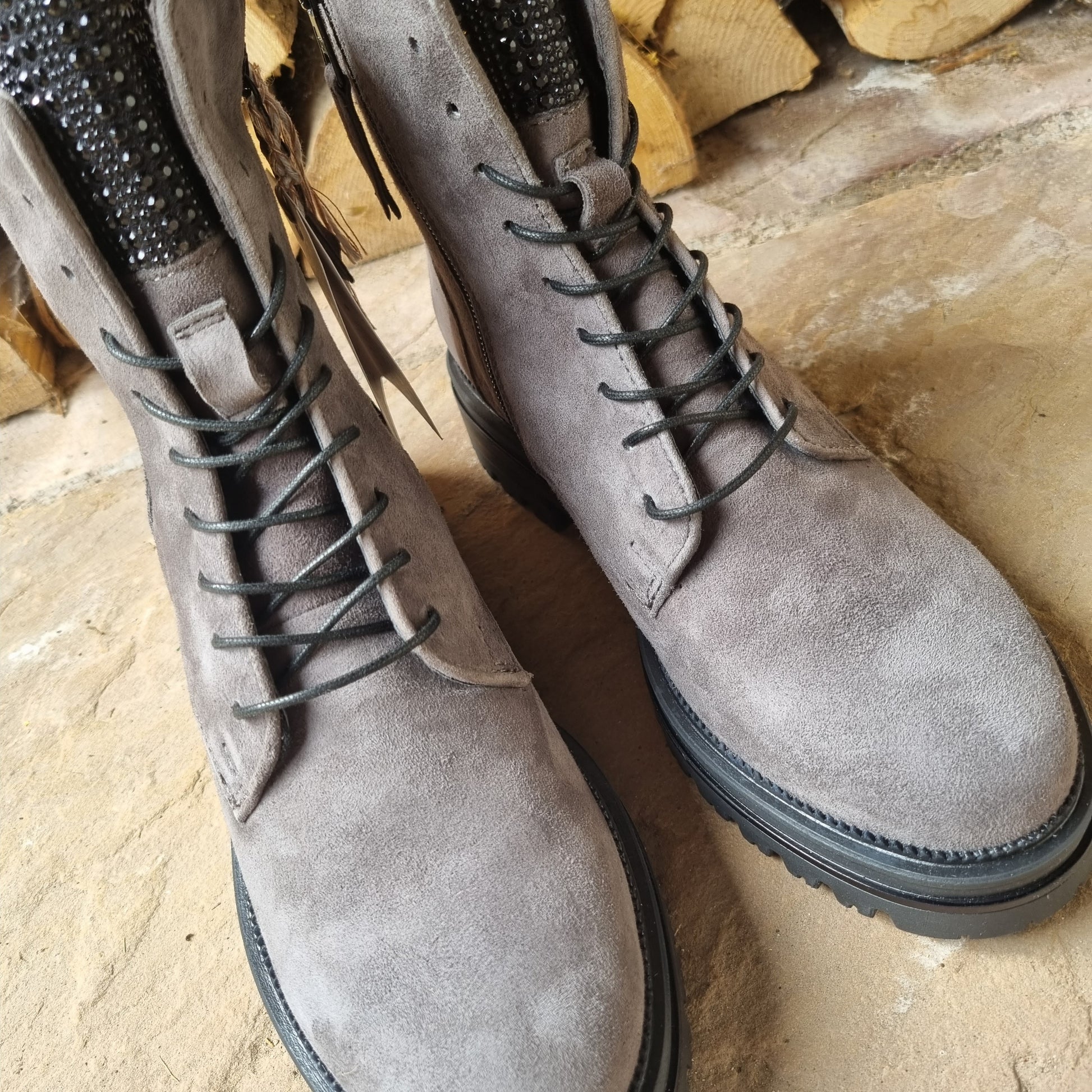 Muse Italian Chunky Suede Boot with Black Sparkle