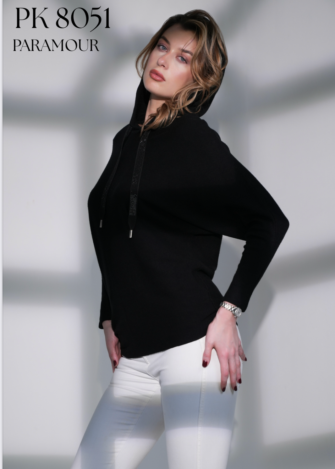 Paramour AW25 PK8051 Black Diamante Drawstring Hoodie