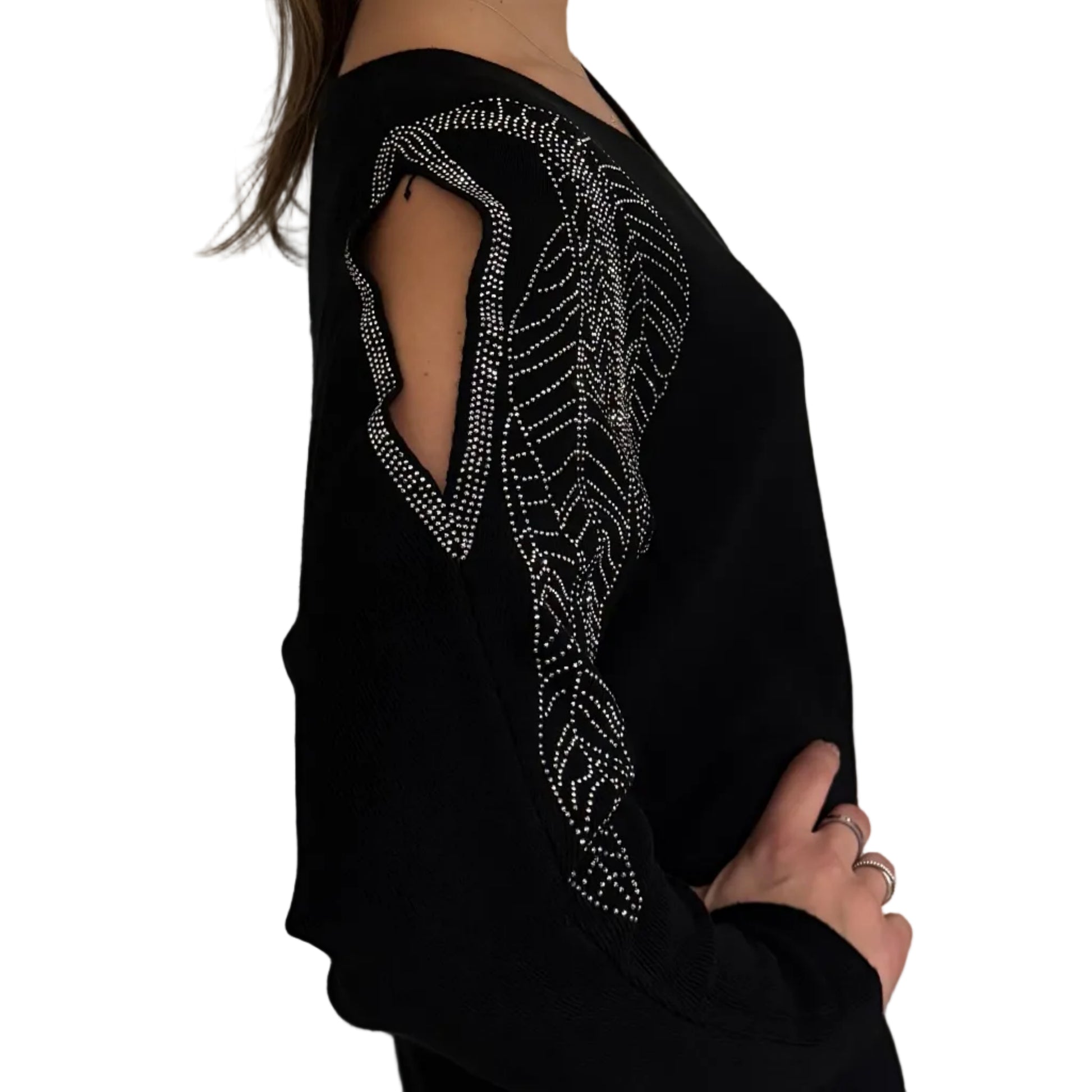 Paramour PK8010 Feather Sparkle Cold Shoulder Jumper