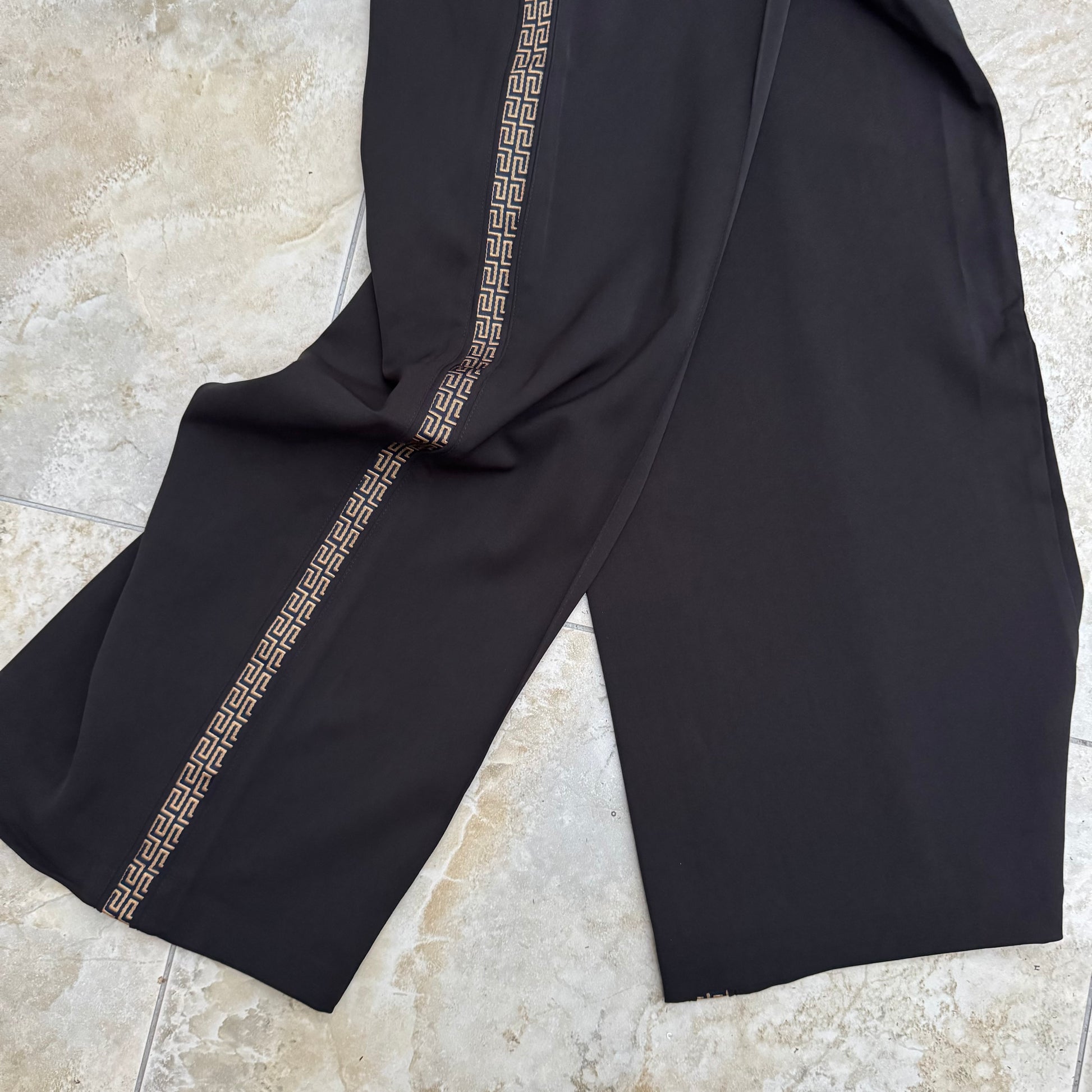 Wide leg trouser with pattern tape detail down the sides, drawstring waistband for comfort, wear with a oversized jumper for a funky casual look.