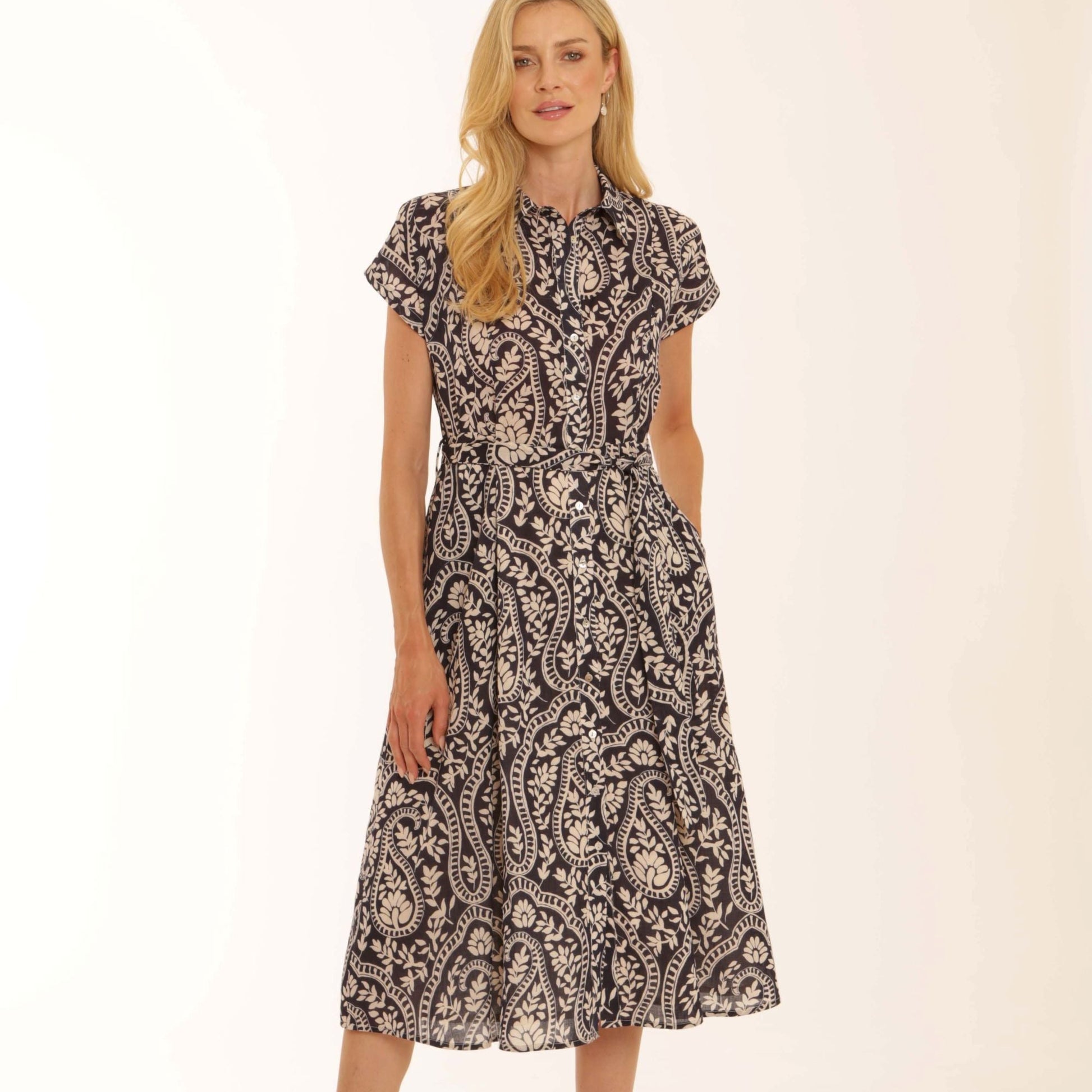 - Shirt dress with all over paisley print