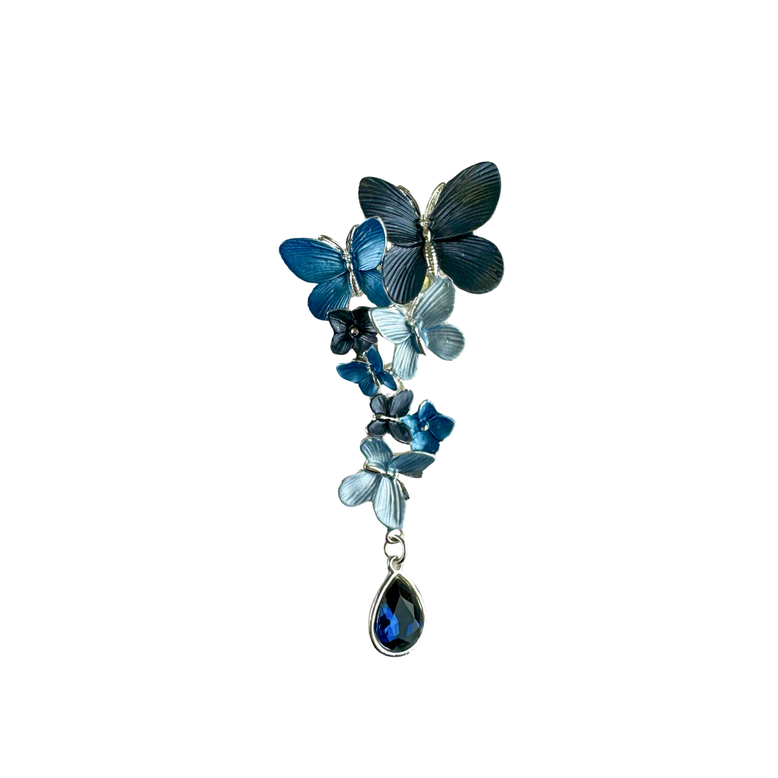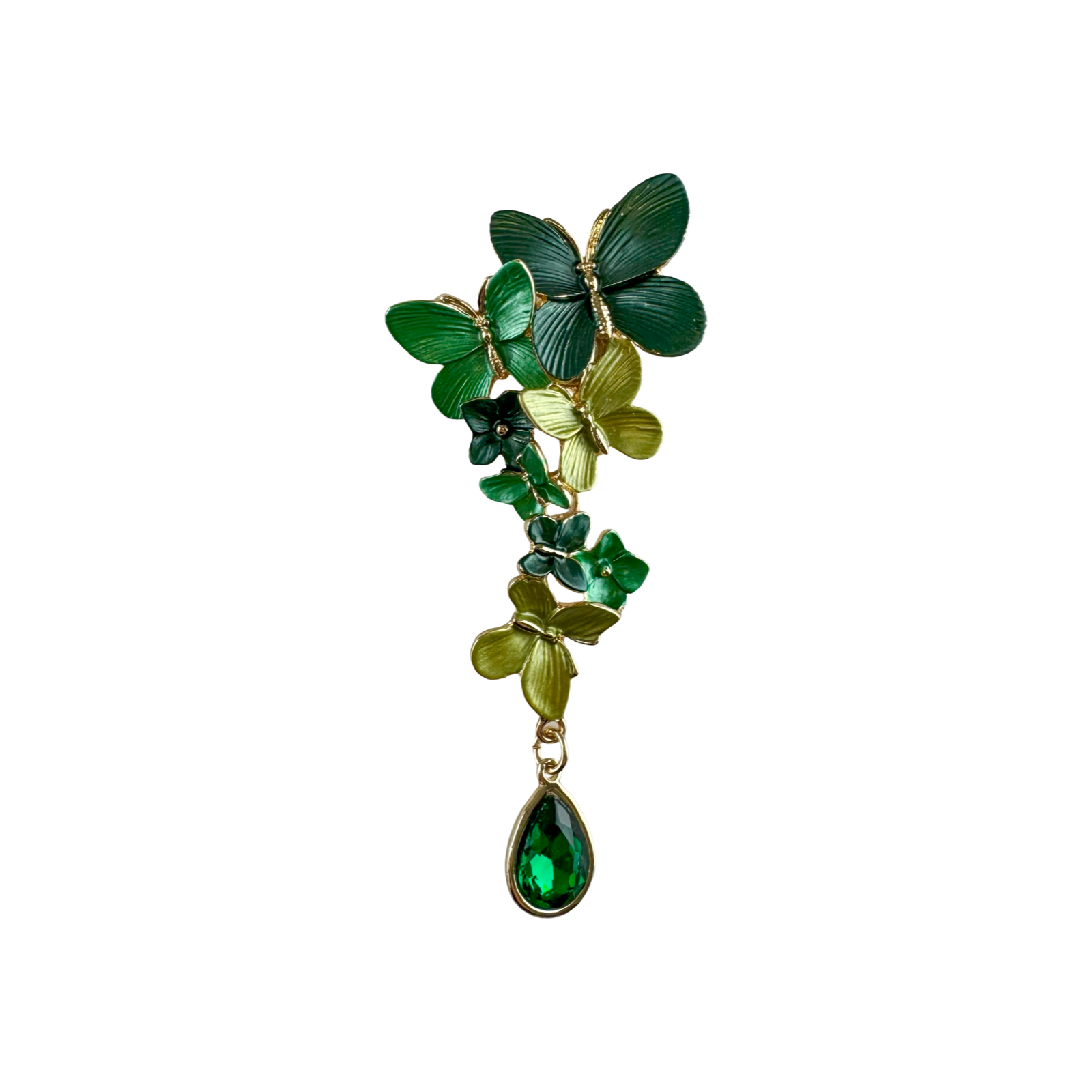 Add a touch of delicate elegance to your outfit with our Butterfly Cascade Magnetic Scarf Clip & Brooch. Available in three enchanting colours—midnight blue, ruby red, and emerald green—this brooch features a stunning cascade of butterflies, each intricately crafted with lifelike detail. The design is completed with a teardrop gemstone that dangles gracefully, catching the light with every movement. The strong magnetic clasp ensures a secure hold, making it perfect for both fastening a scarf or wearing as a stand-alone statement piece. This versatile accessory is ideal for adding a whimsical yet sophisticated flair to any ensemble.