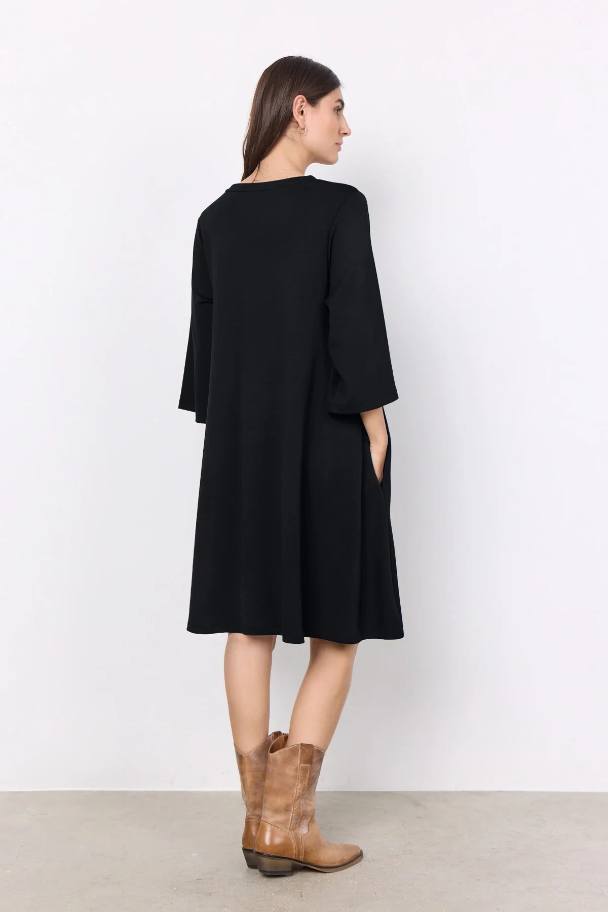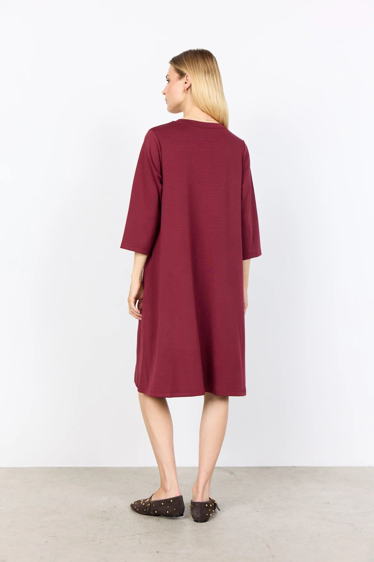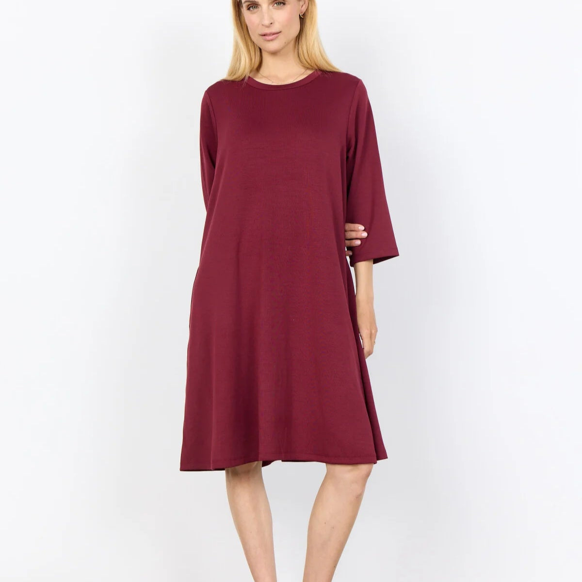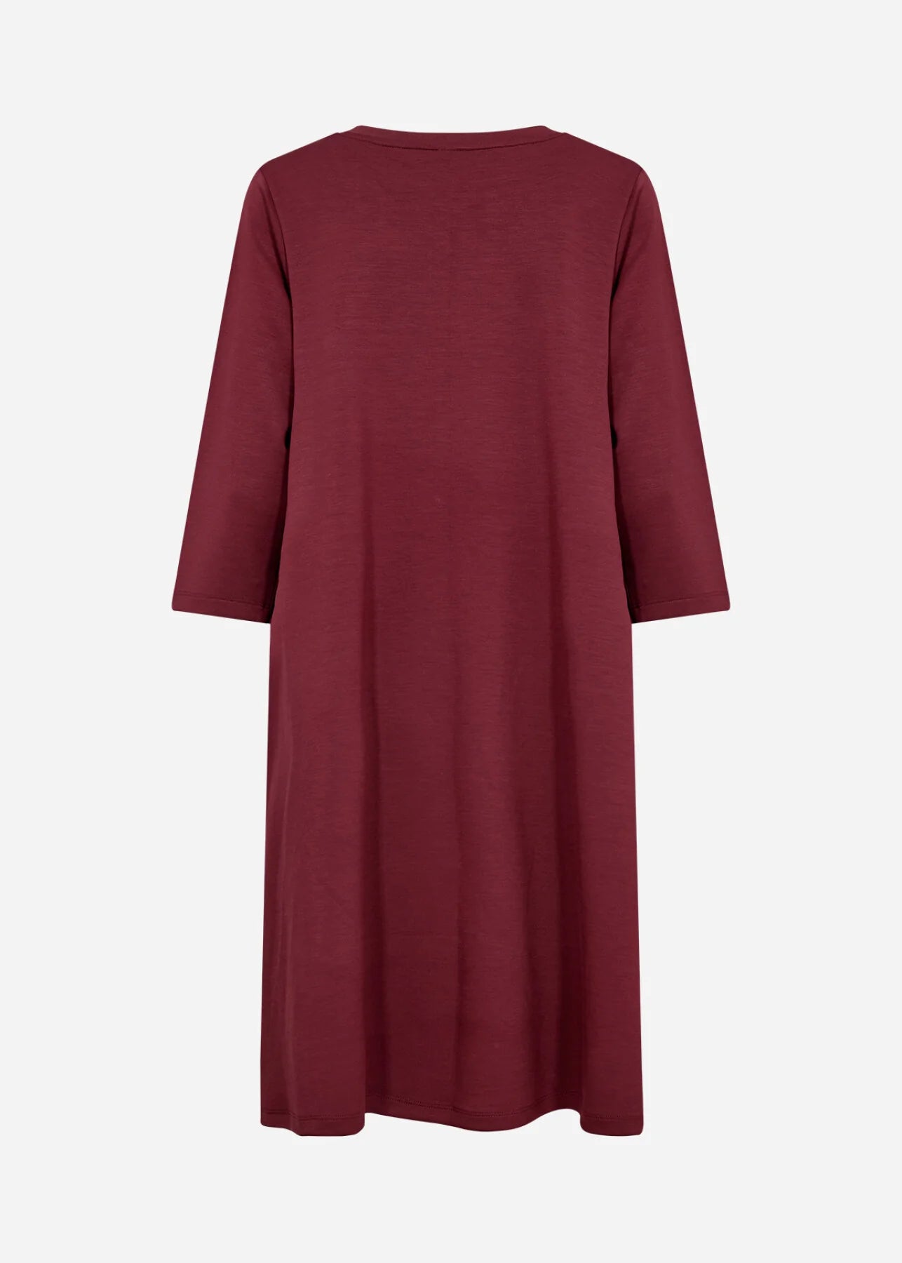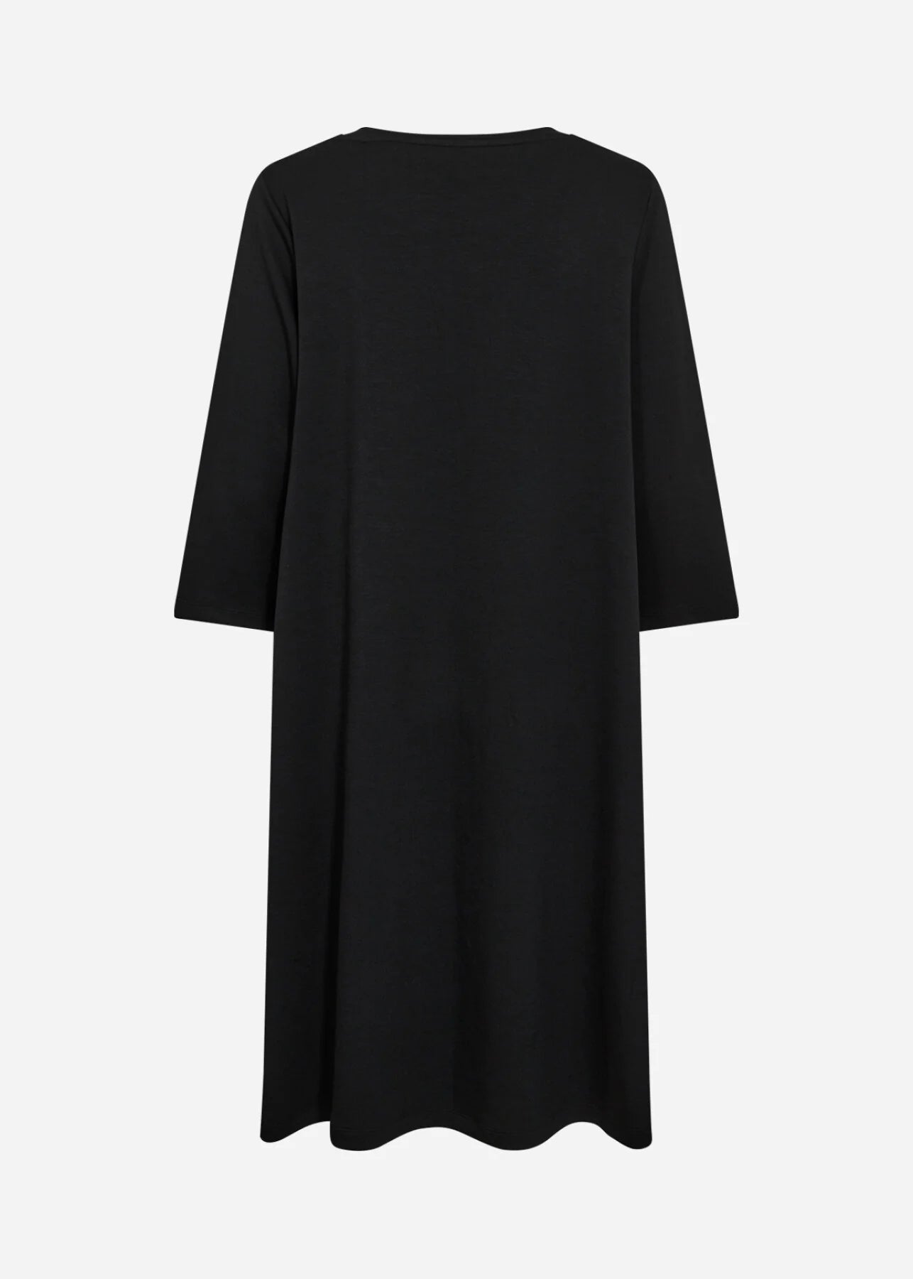 SC-Banu 155 is a casual dress made from a nice blend of modal, polyester and elastane. The dress has a round neckline, a loose fit, loose 3/4 sleeves and a midi length and pockets! Style it with a pair of colourful leggings and a waistcoat for a nice layered look.