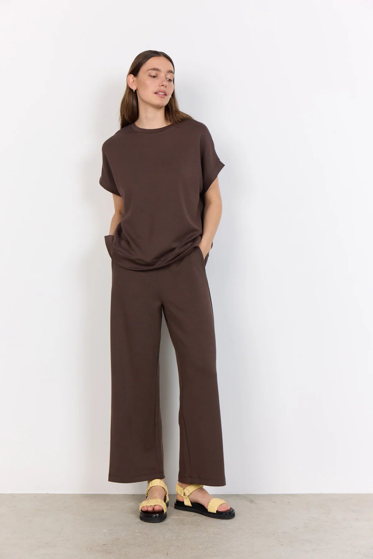 SC-Banu 33 are comfortable pants in a mordal and polyester blend. They have elastic and tie strings at the waist, a straigt leg design and loose fit. These soft sweat pants are perfect for everyday wear and relaxing days at home.