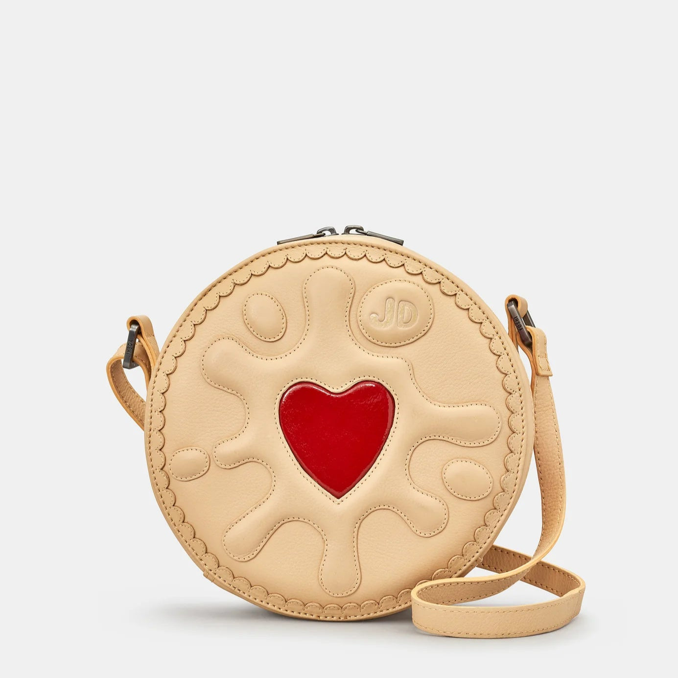This Official Jammie Dodger biscuit cream leather ladies cross body bag looks so yummy with its Jammy Love Heart Heart front detailing. This womens across body handbag has an adjustable strap and lots of inside storage space and pockets for all of your essentials.