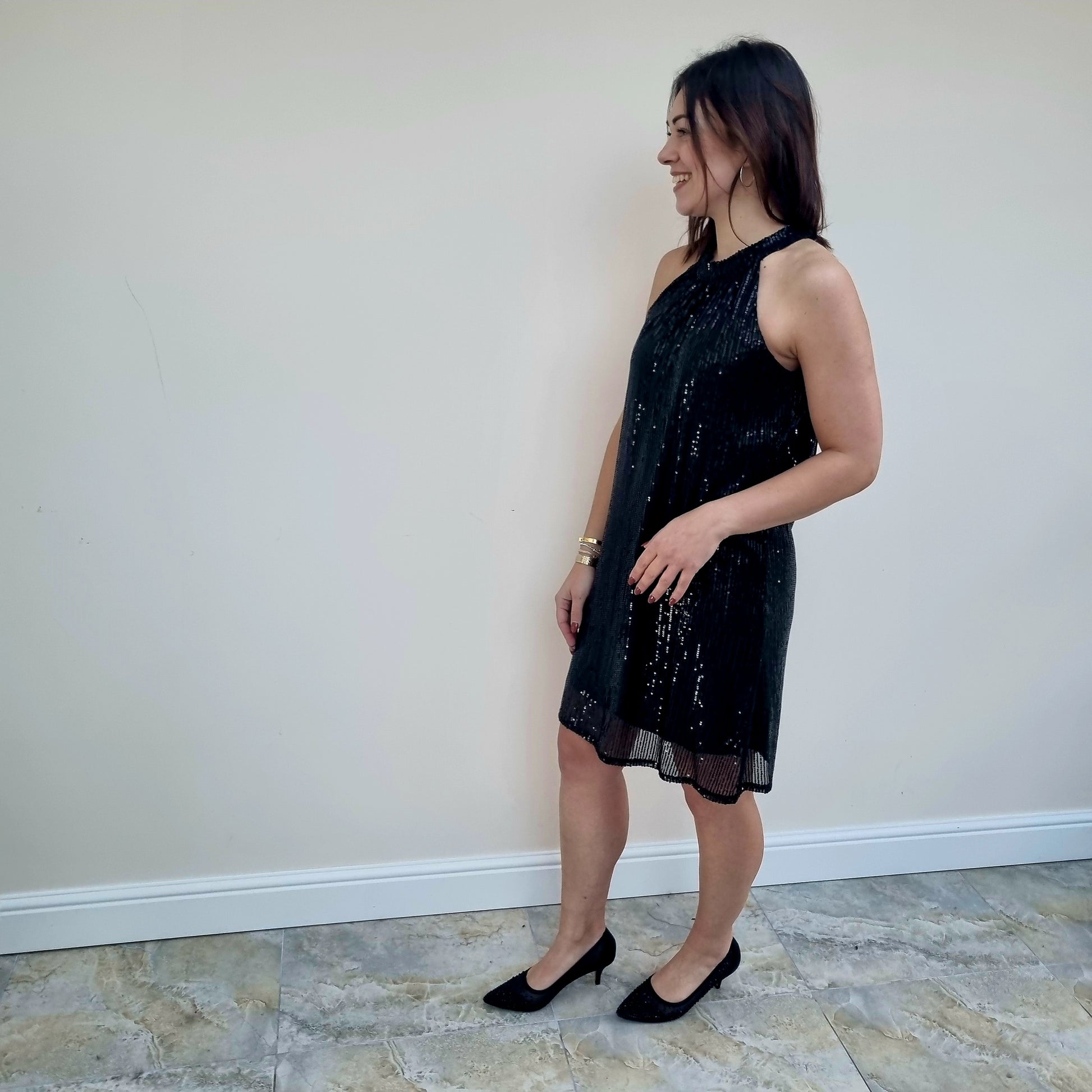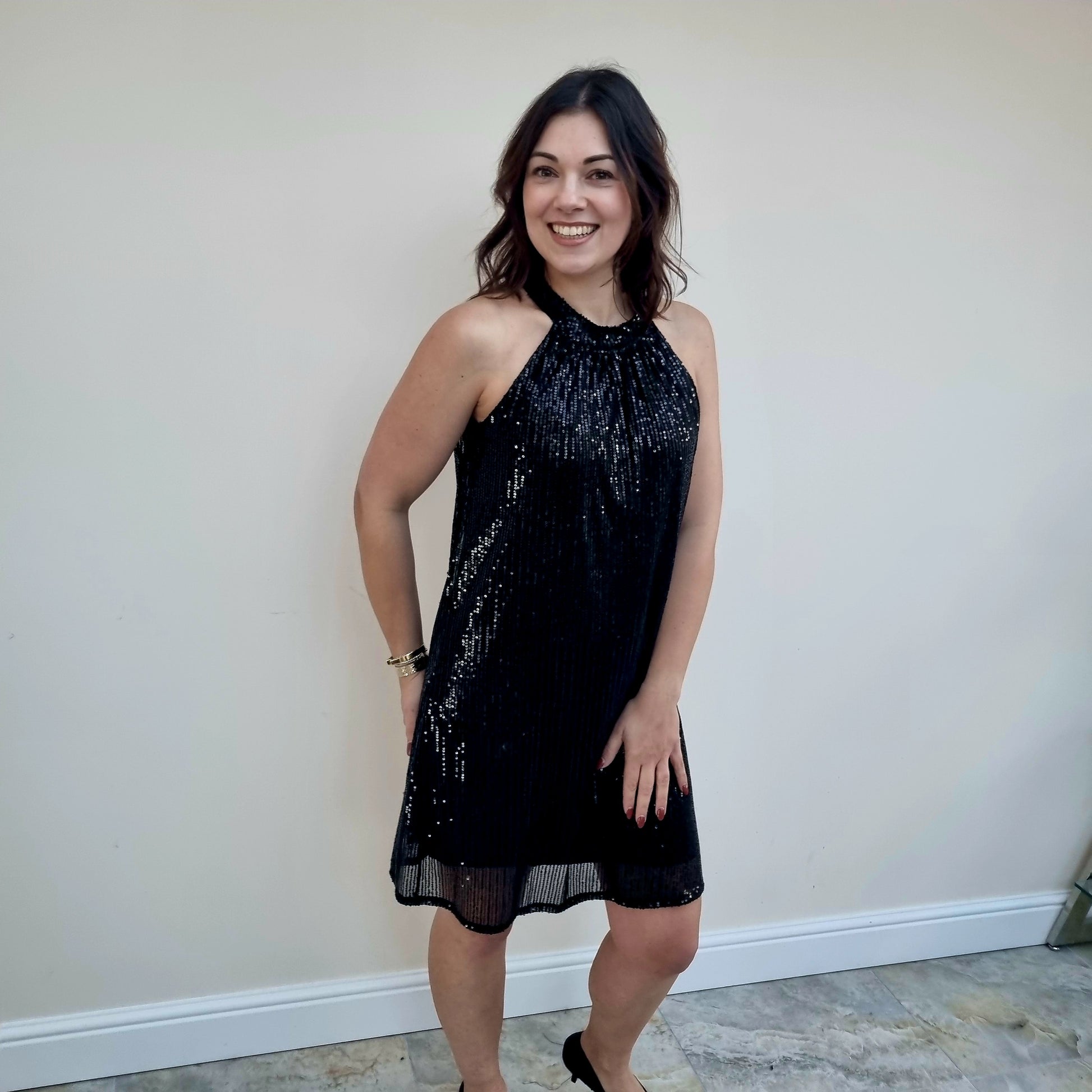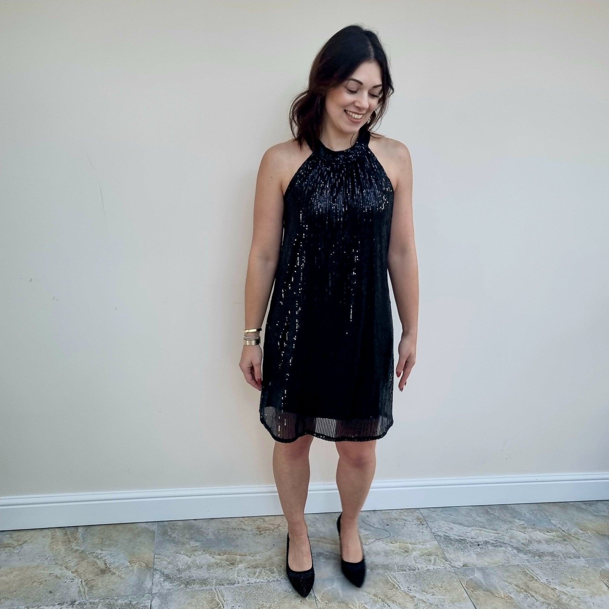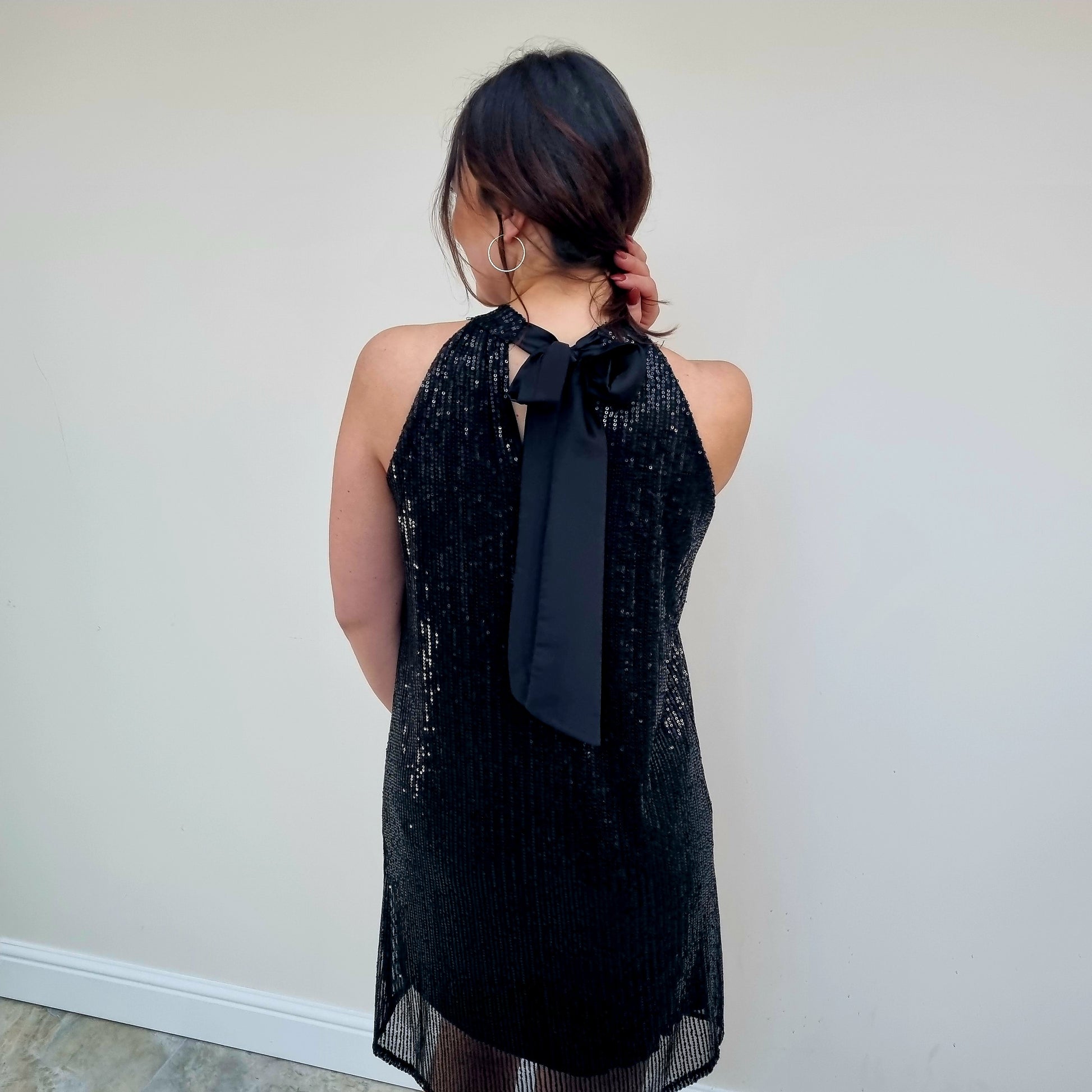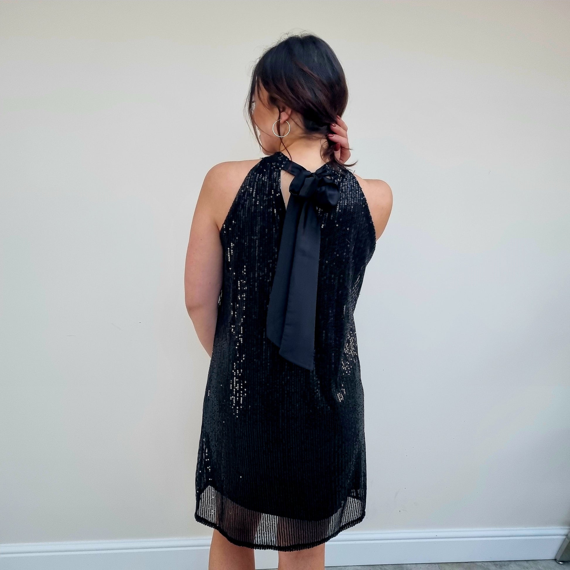 Halterneck Sequin Dress with Satin Bow Neck Tie